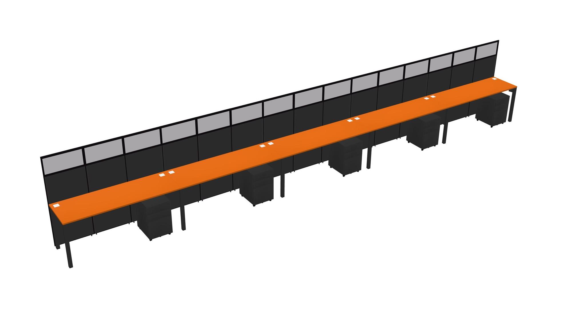 Orange Shared Rectangular Office Cubicle Panel System With Mobile Drawers For 5 Persons