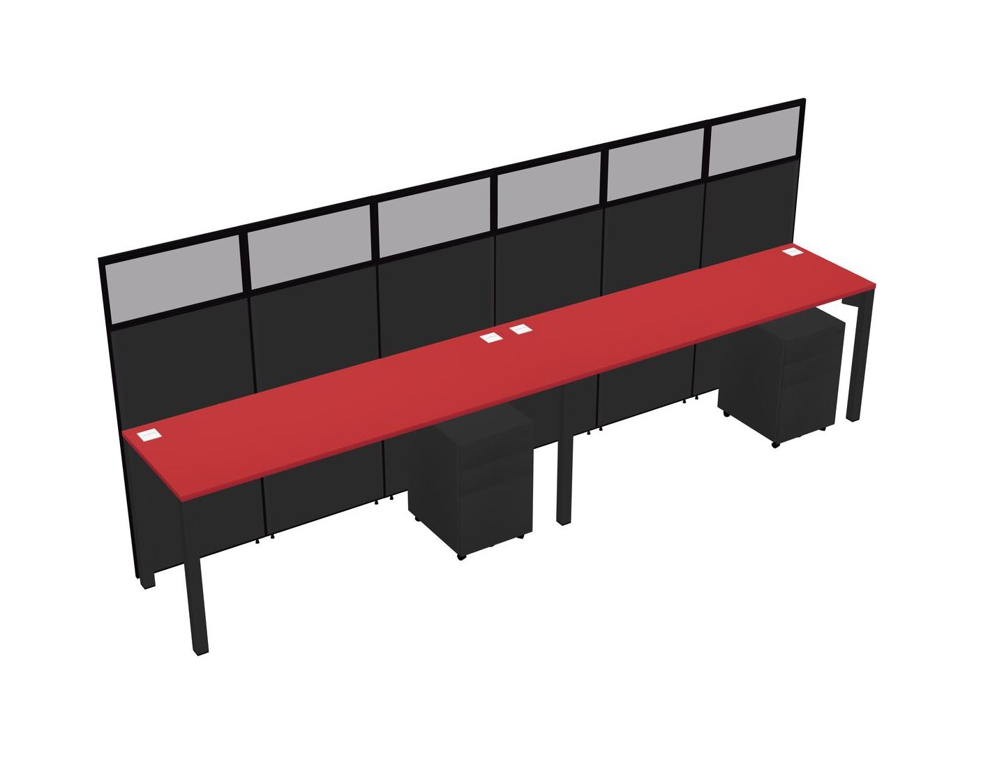 Prism Red Shared Rectangular Office Cubicle Panel System With Mobile Drawers For 2 Persons