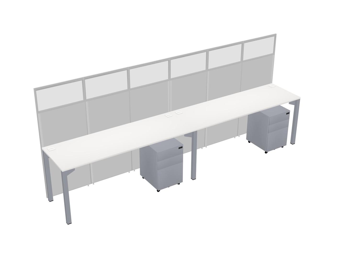 White Shared Rectangular Office Cubicle Panel System With Mobile Drawers For 2 Persons