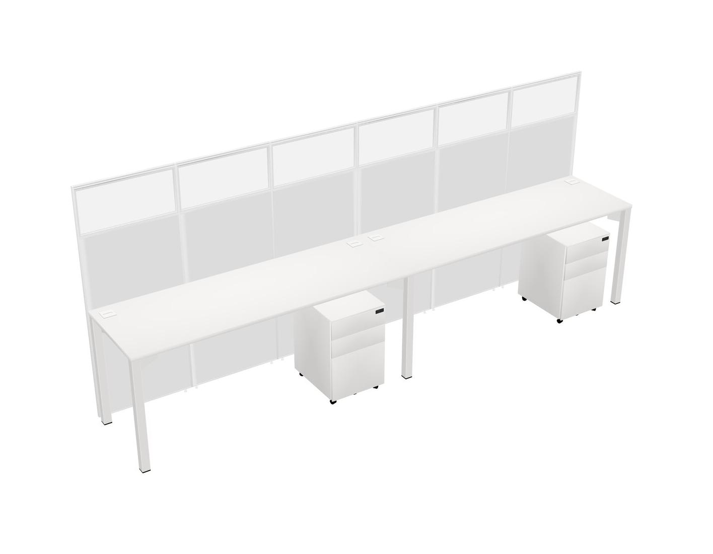 White Shared Rectangular Office Cubicle Panel System With Mobile Drawers For 2 Persons