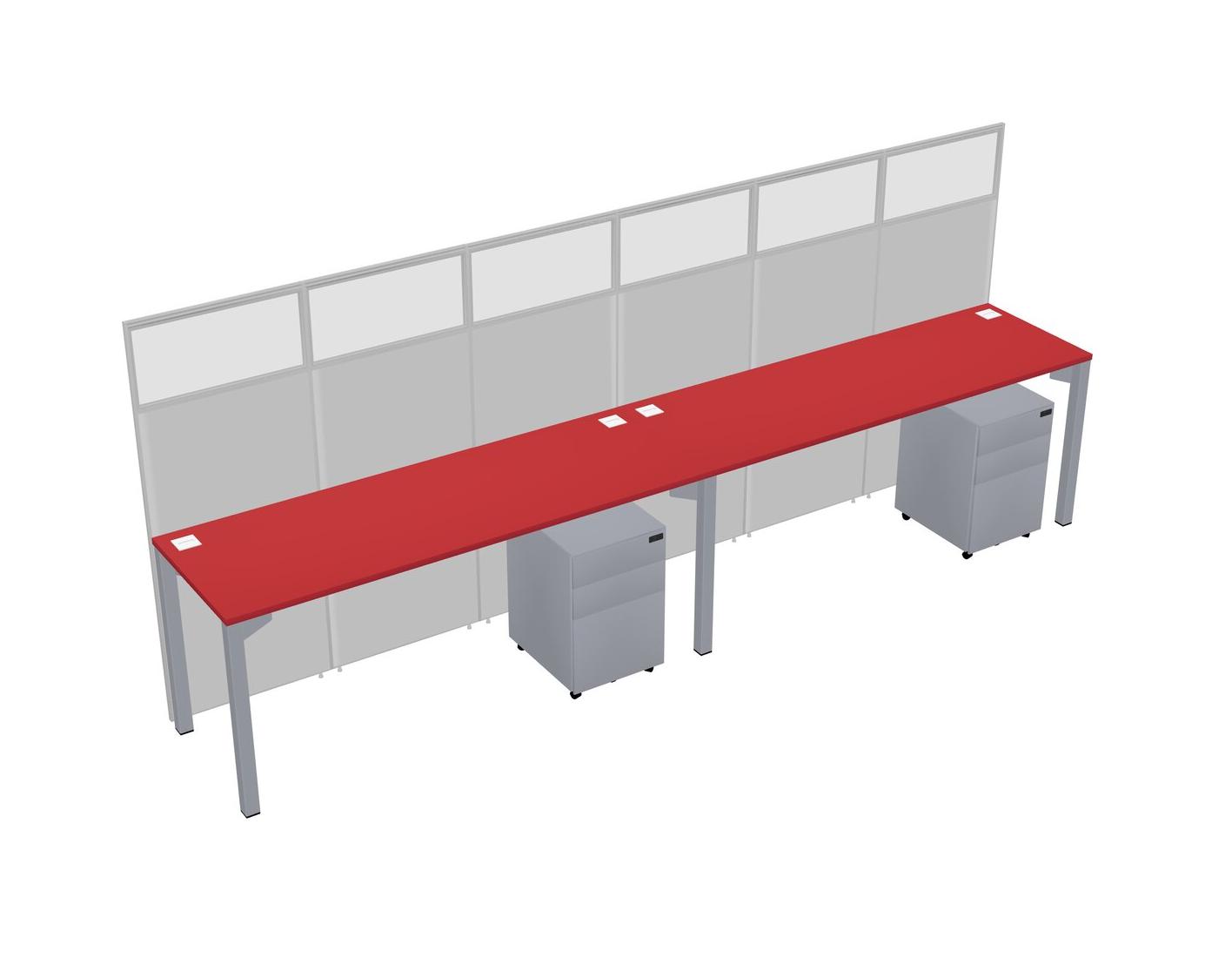 Prism Red Shared Rectangular Office Cubicle Panel System With Mobile Drawers For 2 Persons