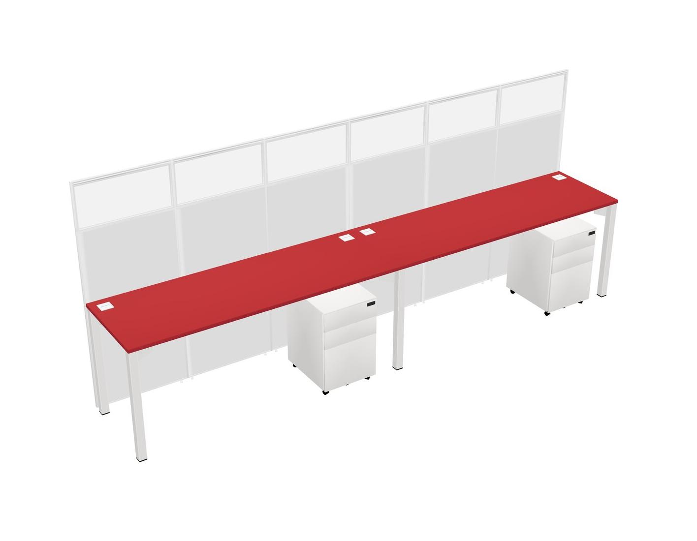 Prism Red Shared Rectangular Office Cubicle Panel System With Mobile Drawers For 2 Persons