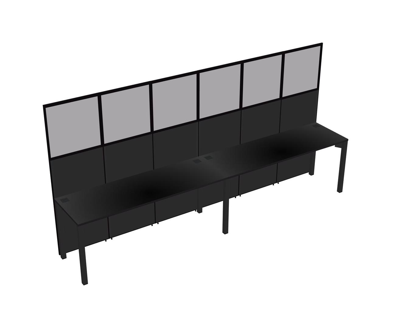 Black Shared Rectangular Office Cubicle Panel System For 2 Persons