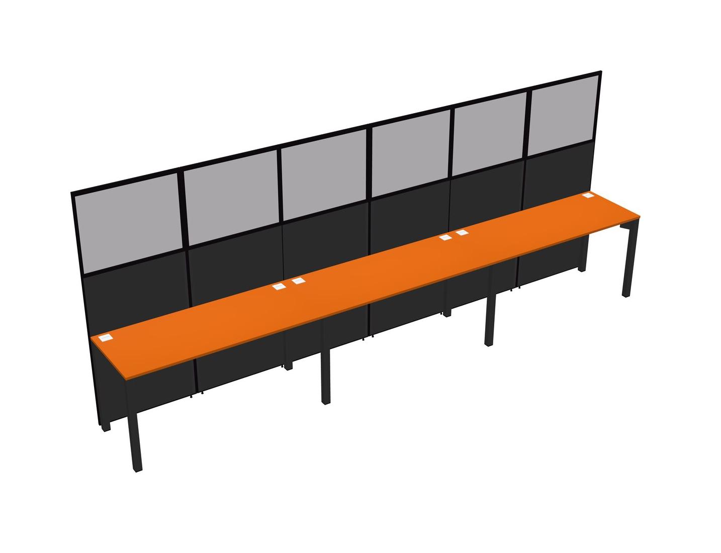 Orange Shared Rectangular Office Cubicle Panel System For 3 Persons