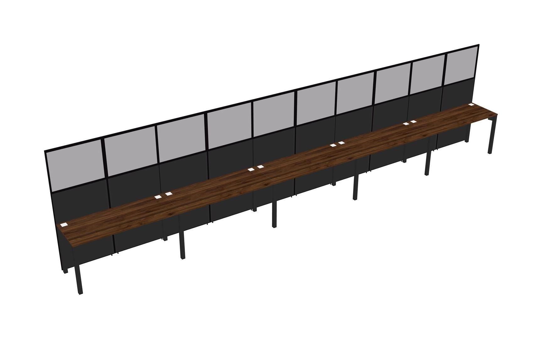Columbia Walnut Shared Rectangular Office Cubicle Panel System For 5 Persons