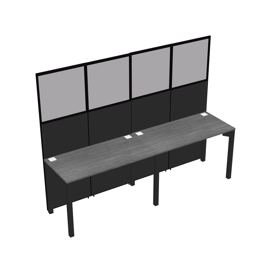 Grey Shared Rectangular Office Cubicle Panel System For 2 Persons