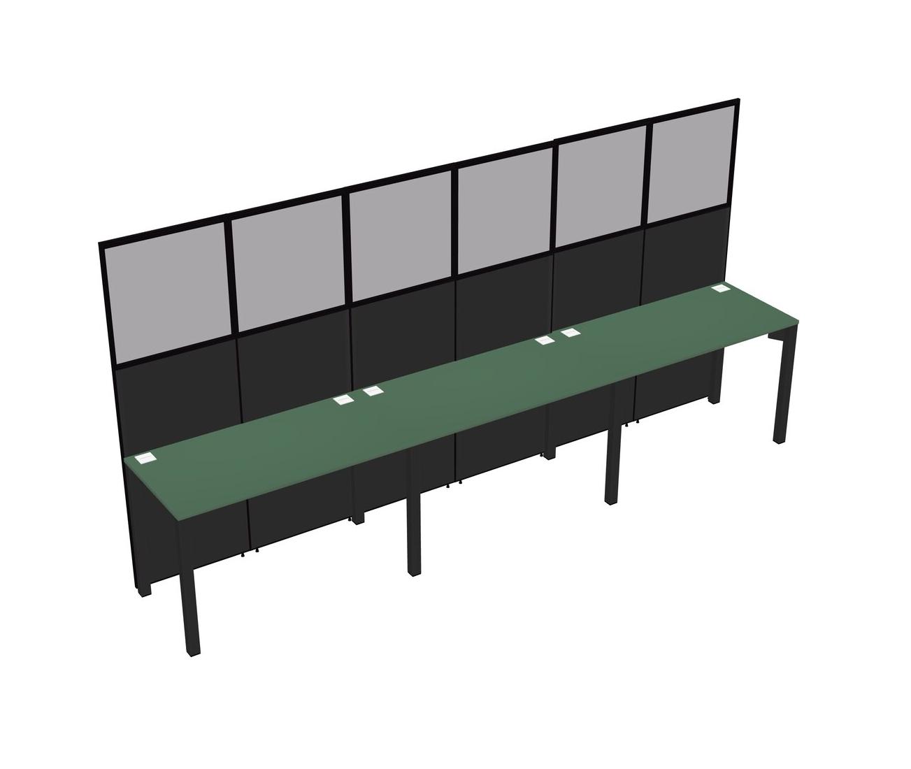 Green Shared Rectangular Office Cubicle Panel System For 3 Persons