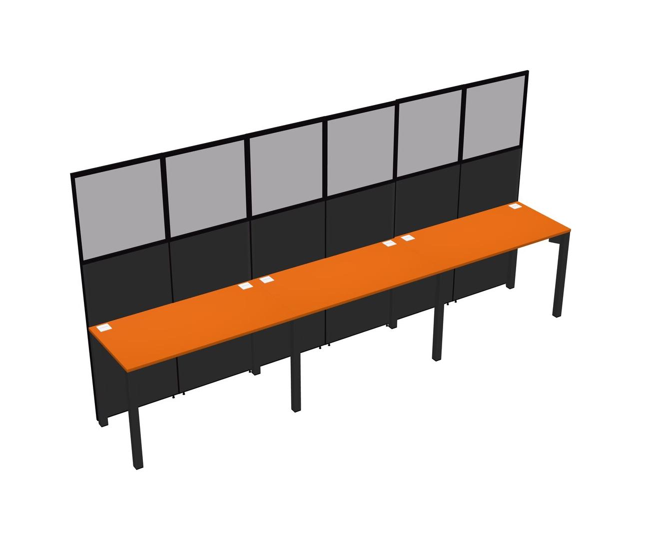 Orange Shared Rectangular Office Cubicle Panel System For 3 Persons