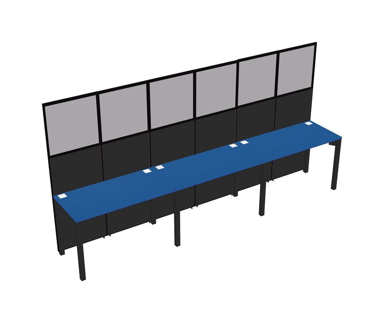 Prism Blue Shared Rectangular Office Cubicle Panel System For 3 Persons