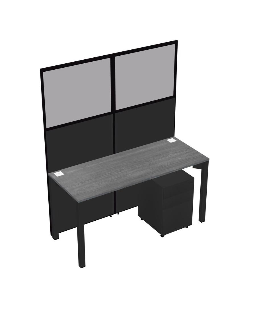 Grey Shared Rectangular Office Cubicle Panel System With Mobile Drawers For 1 Persons