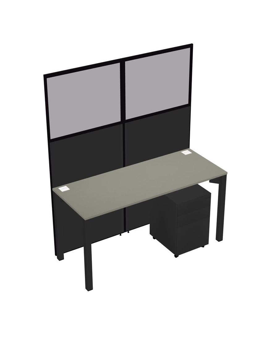 Grey Shadows Shared Rectangular Office Cubicle Panel System With Mobile Drawers For 1 Persons