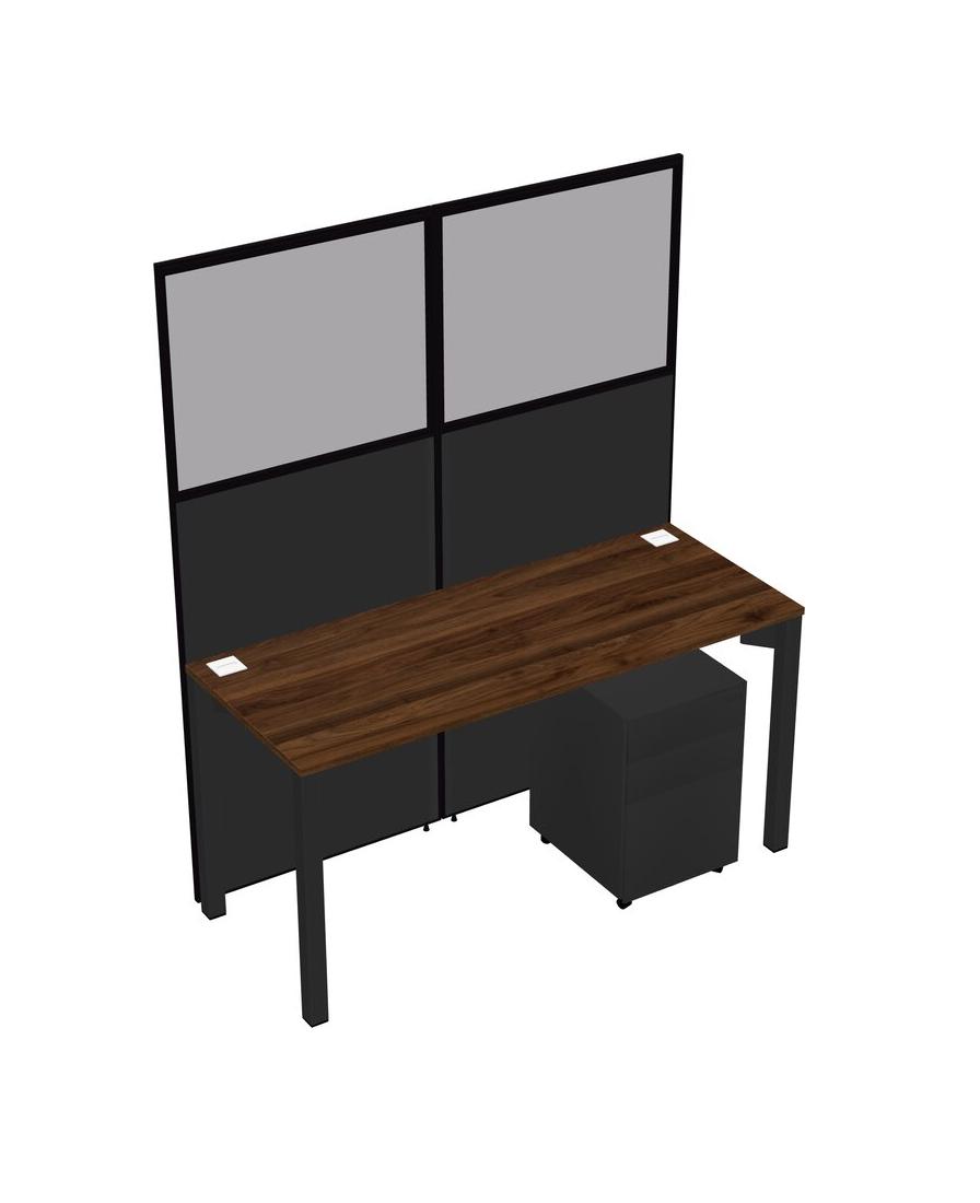 Columbia Walnut Shared Rectangular Office Cubicle Panel System With Mobile Drawers For 1 Persons