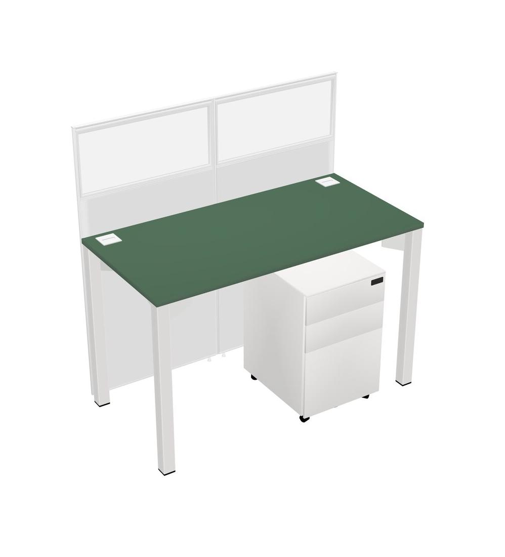 Green Shared Rectangular Office Cubicle Panel System With Mobile Drawers For 1 Persons