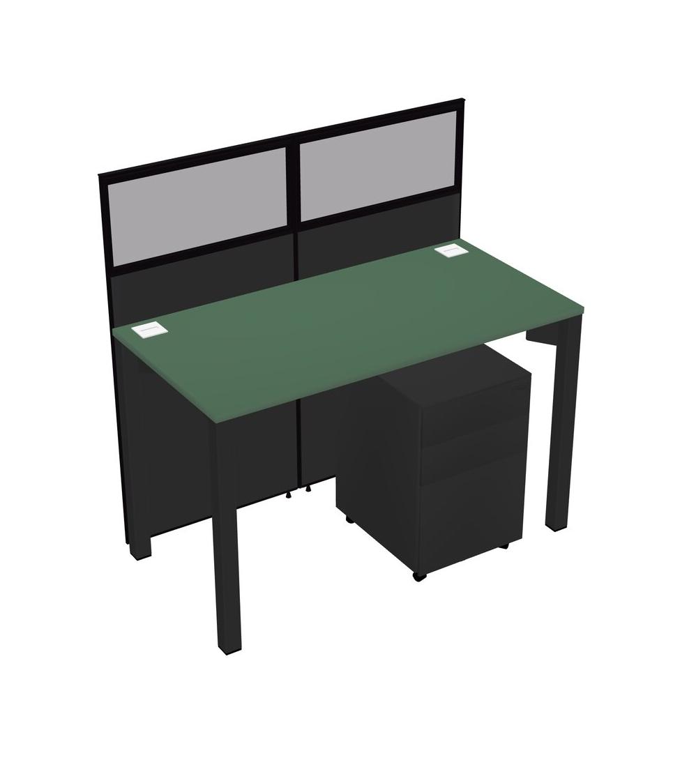 Green Shared Rectangular Office Cubicle Panel System With Mobile Drawers For 1 Persons