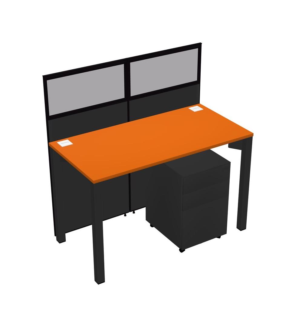 Orange Shared Rectangular Office Cubicle Panel System With Mobile Drawers For 1 Persons