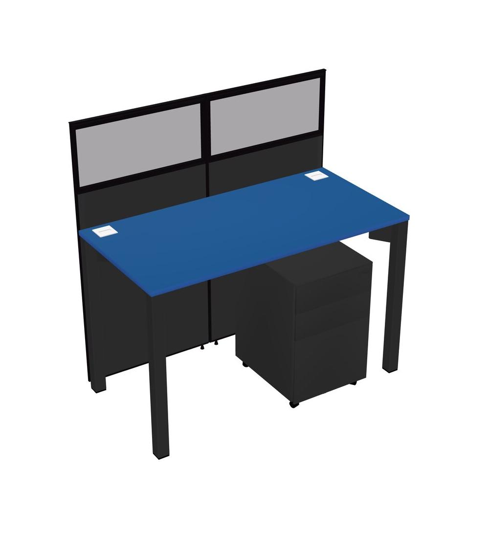Prism Blue Shared Rectangular Office Cubicle Panel System With Mobile Drawers For 1 Persons