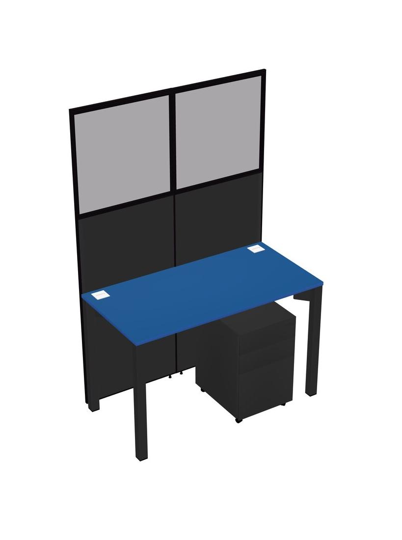 Prism Blue Shared Rectangular Office Cubicle Panel System With Mobile Drawers For 1 Persons