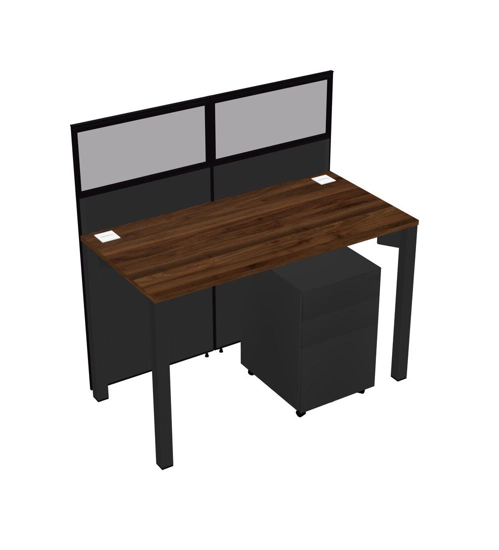 Columbia Walnut Shared Rectangular Office Cubicle Panel System With Mobile Drawers For 1 Persons