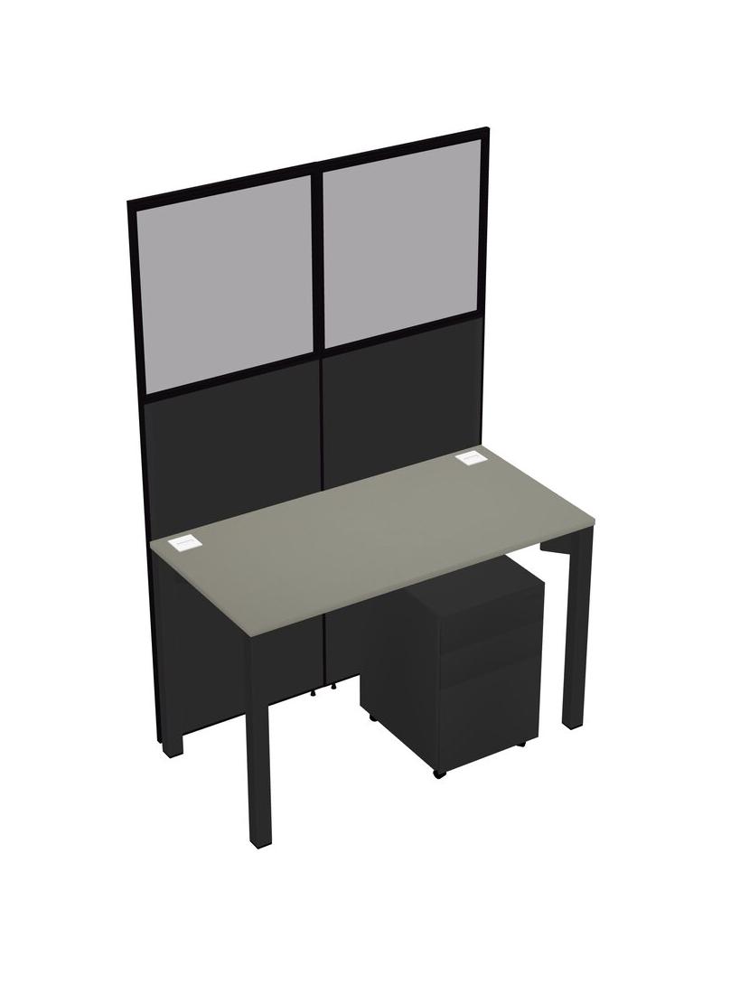Grey Shadows Shared Rectangular Office Cubicle Panel System With Mobile Drawers For 1 Persons