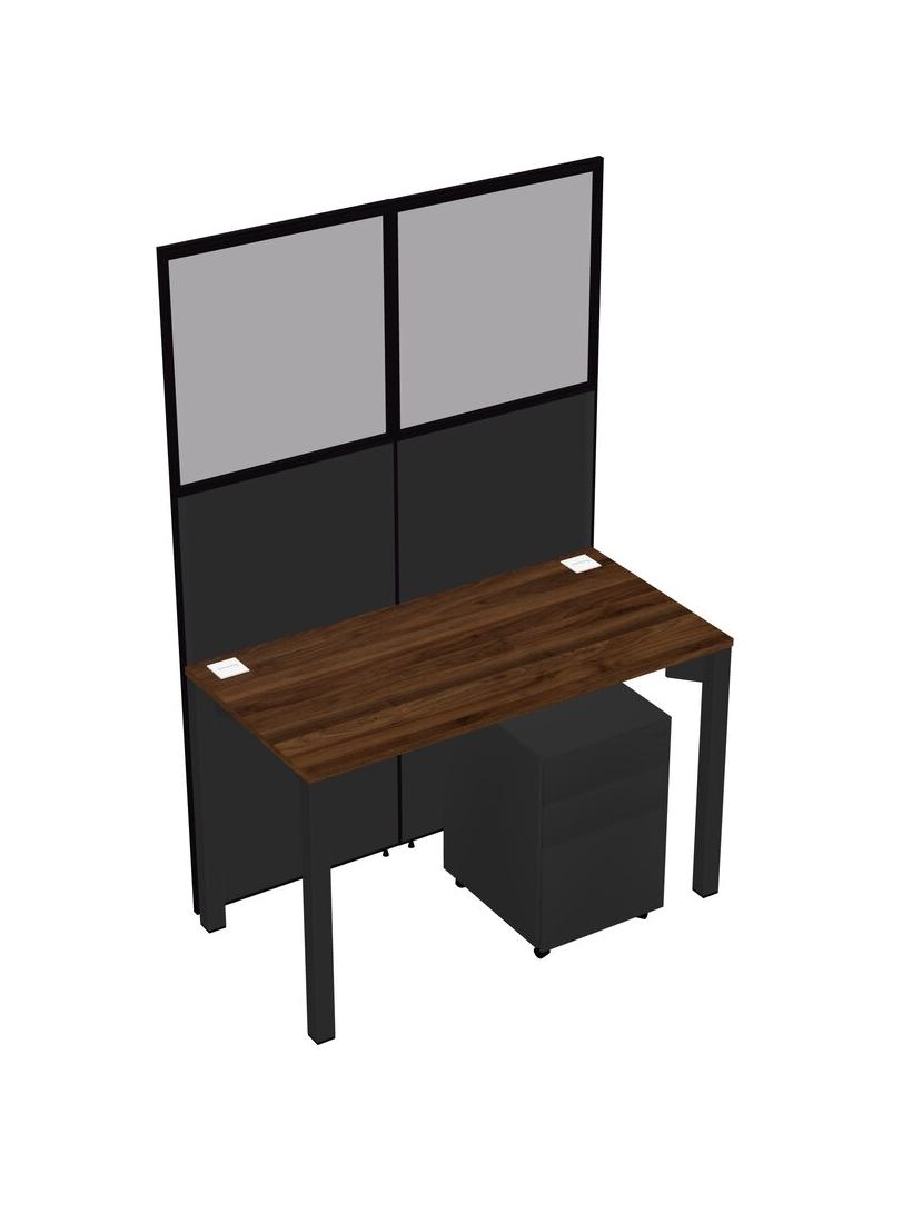 Columbia Walnut Shared Rectangular Office Cubicle Panel System With Mobile Drawers For 1 Persons