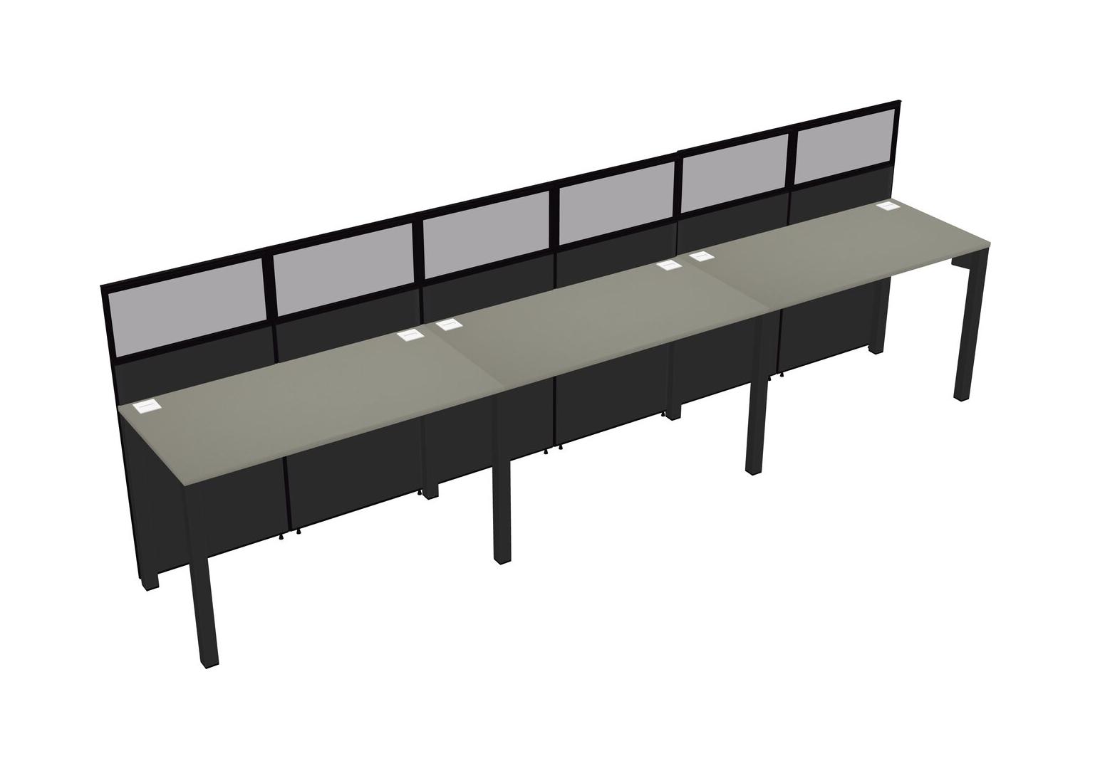 Grey Shadows Shared Rectangular Office Cubicle Panel System For 3 Persons