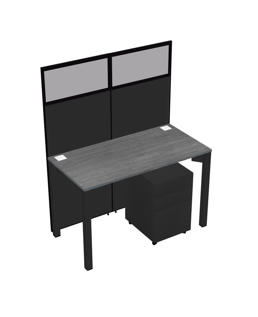 Grey Shared Rectangular Office Cubicle Panel System With Mobile Drawers For 1 Persons