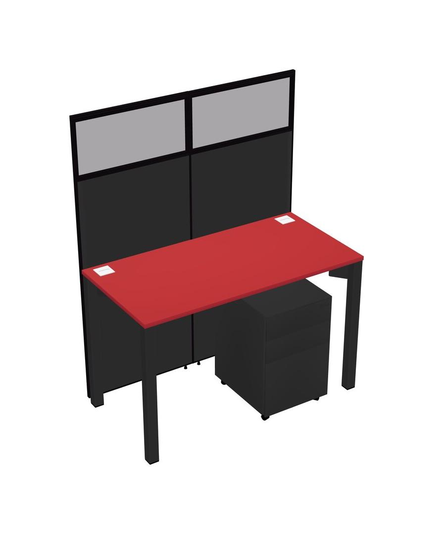 Prism Red Shared Rectangular Office Cubicle Panel System With Mobile Drawers For 1 Persons