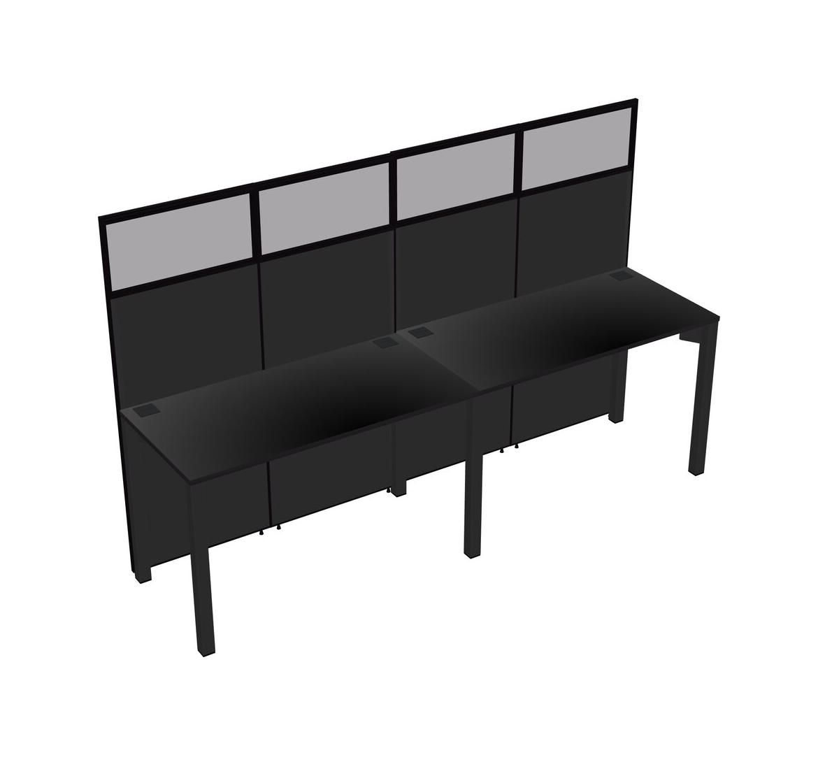 Black Shared Rectangular Office Cubicle Panel System For 2 Persons