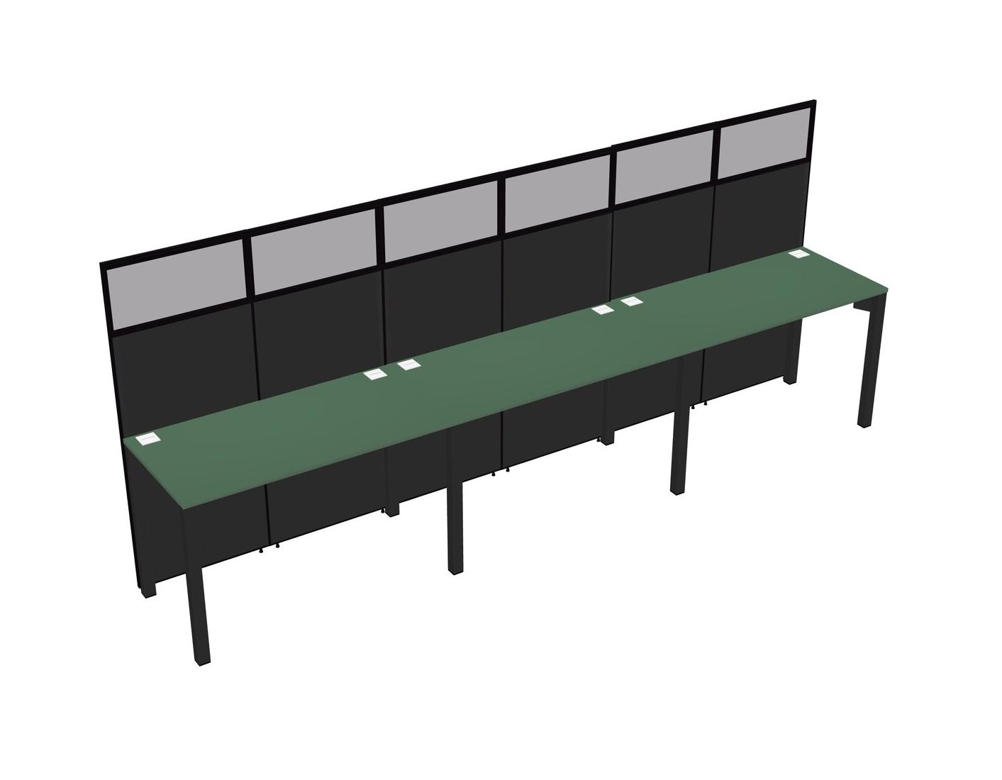 Green Shared Rectangular Office Cubicle Panel System For 3 Persons