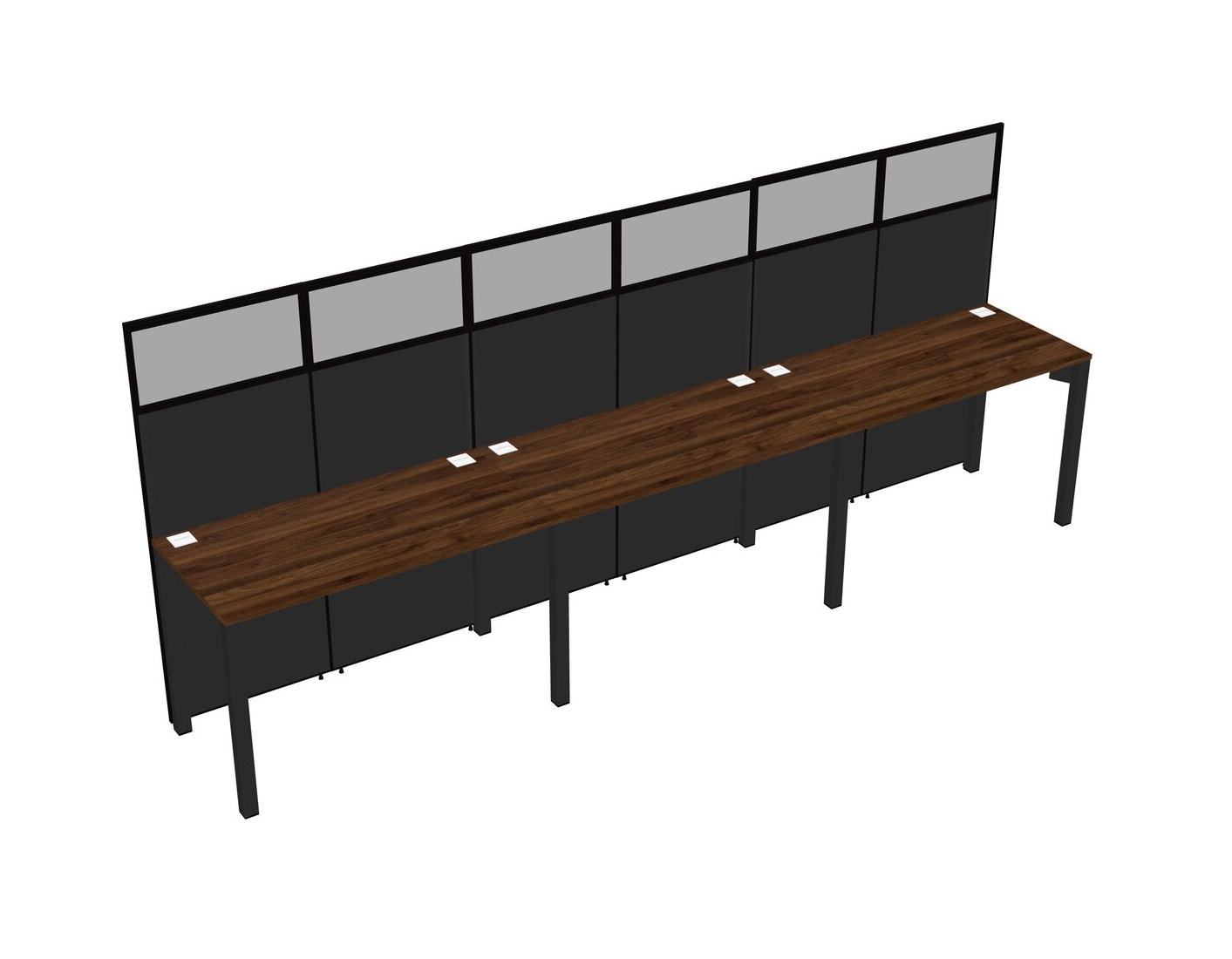Columbia Walnut Shared Rectangular Office Cubicle Panel System For 3 Persons