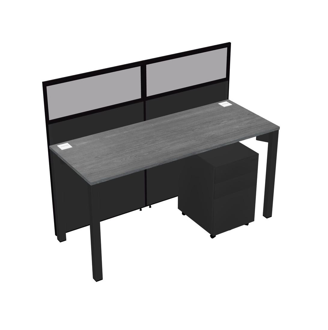 Grey Shared Rectangular Office Cubicle Panel System With Mobile Drawers For 1 Persons