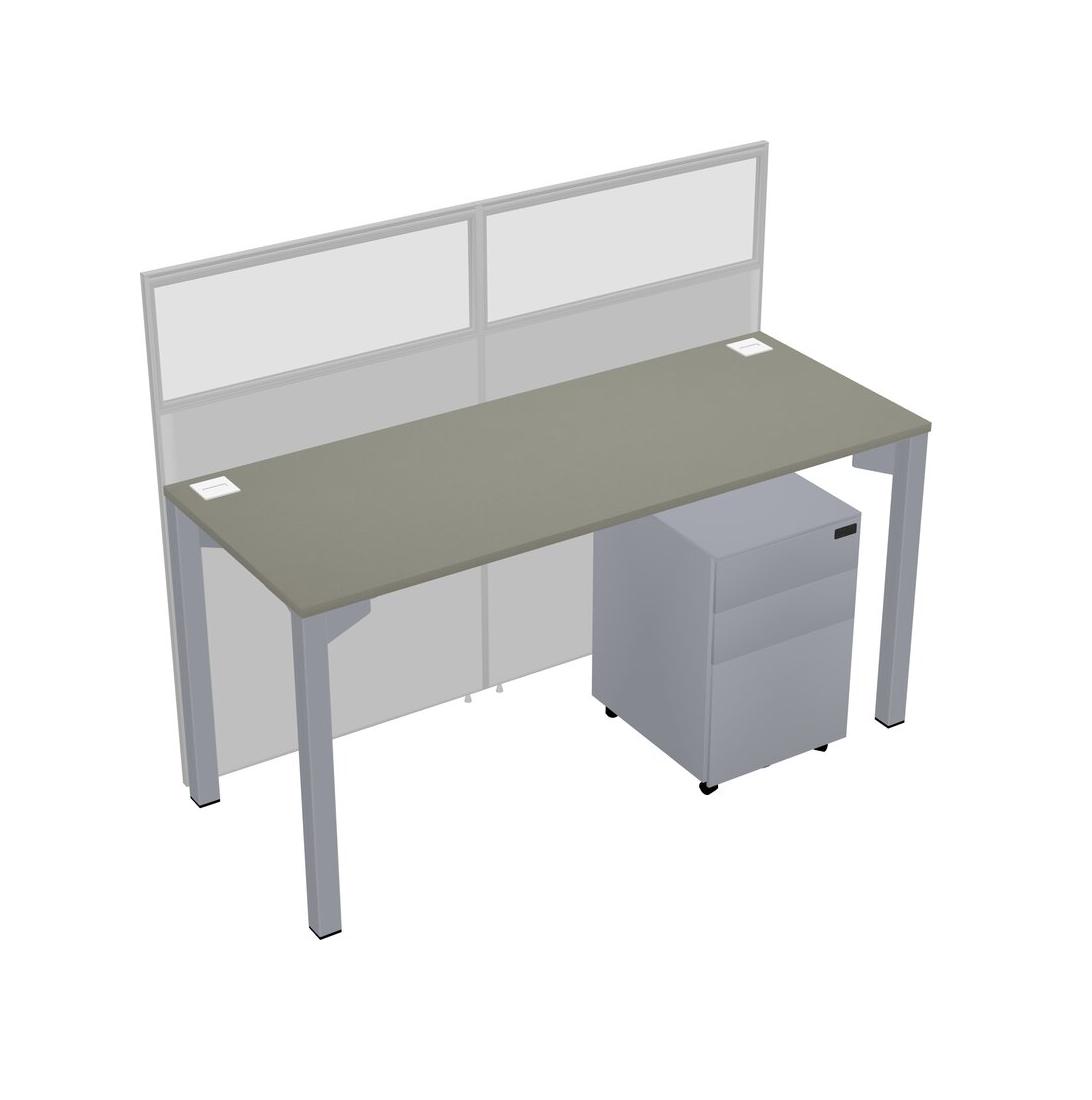 Grey Shadows Shared Rectangular Office Cubicle Panel System With Mobile Drawers For 1 Persons