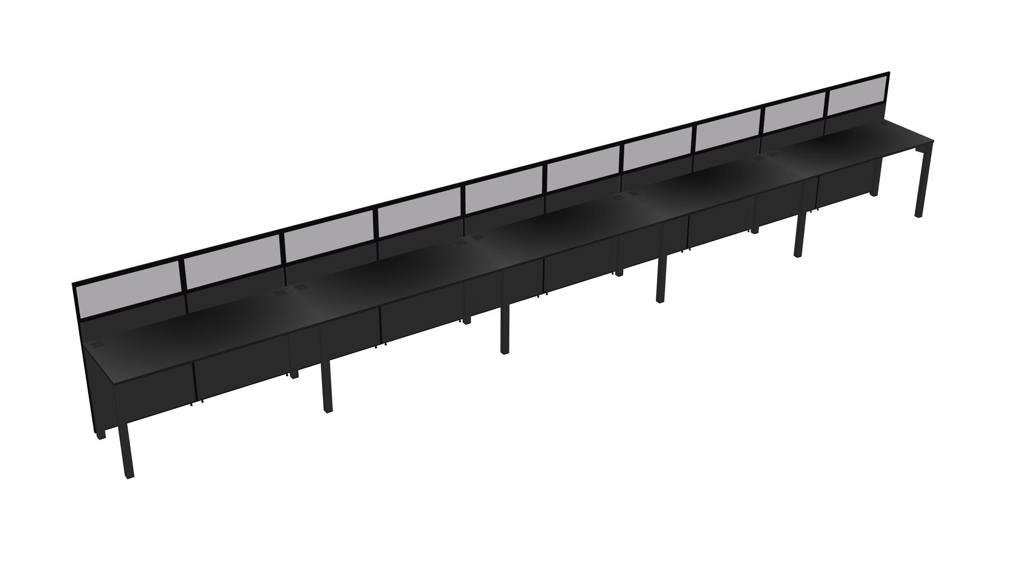 Black Shared Rectangular Office Cubicle Panel System For 5 Persons