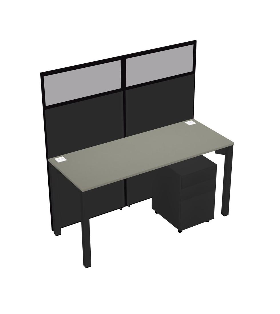 Grey Shadows Shared Rectangular Office Cubicle Panel System With Mobile Drawers For 1 Persons
