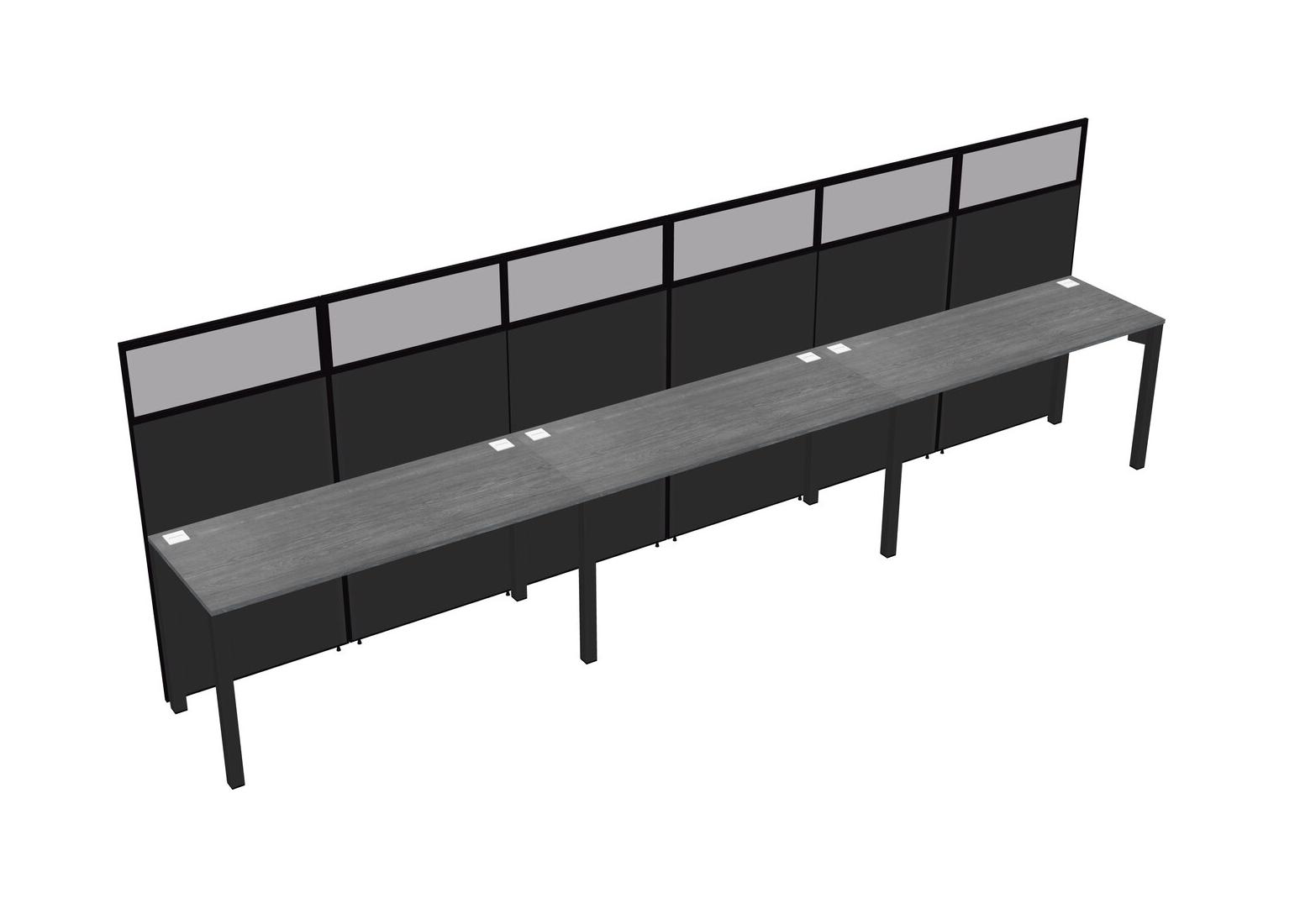Grey Shared Rectangular Office Cubicle Panel System For 3 Persons