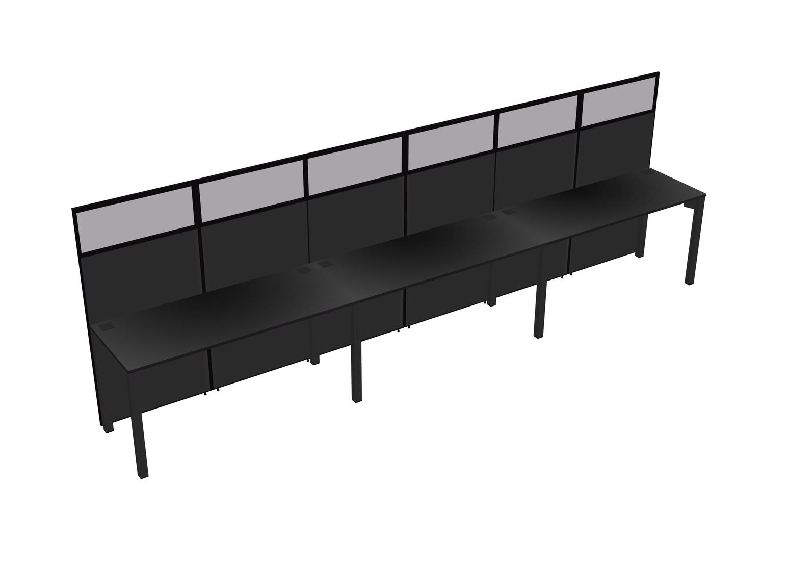 Black Shared Rectangular Office Cubicle Panel System For 3 Persons