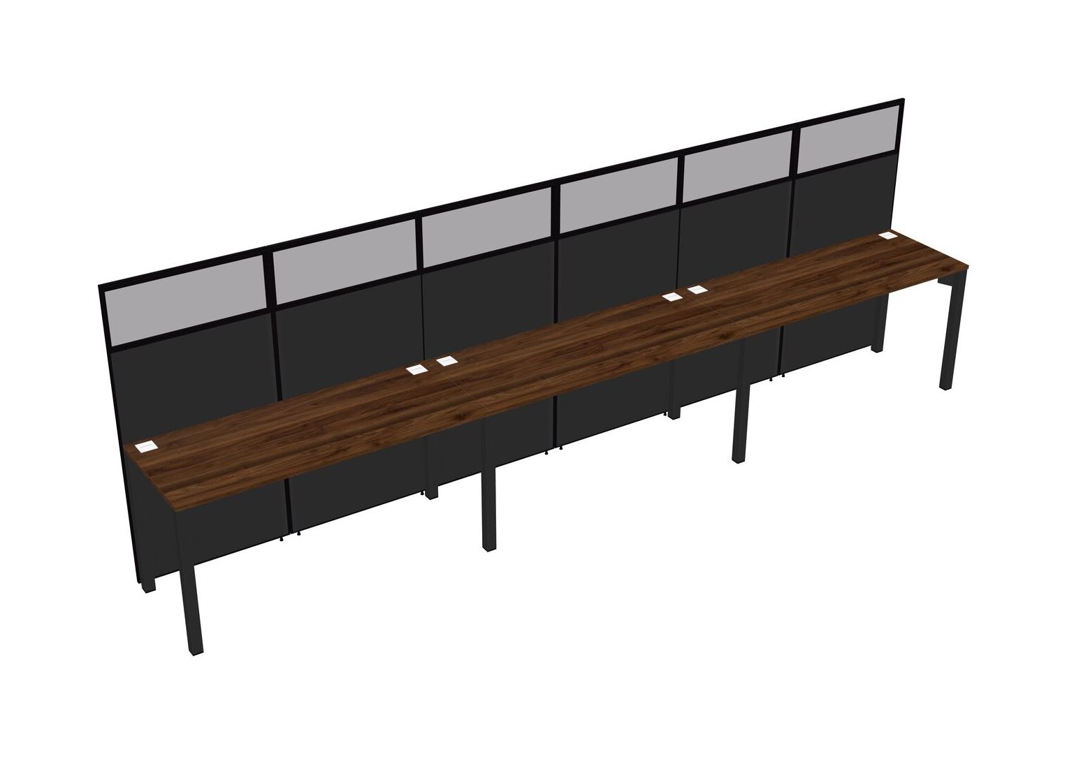 Columbia Walnut Shared Rectangular Office Cubicle Panel System For 3 Persons