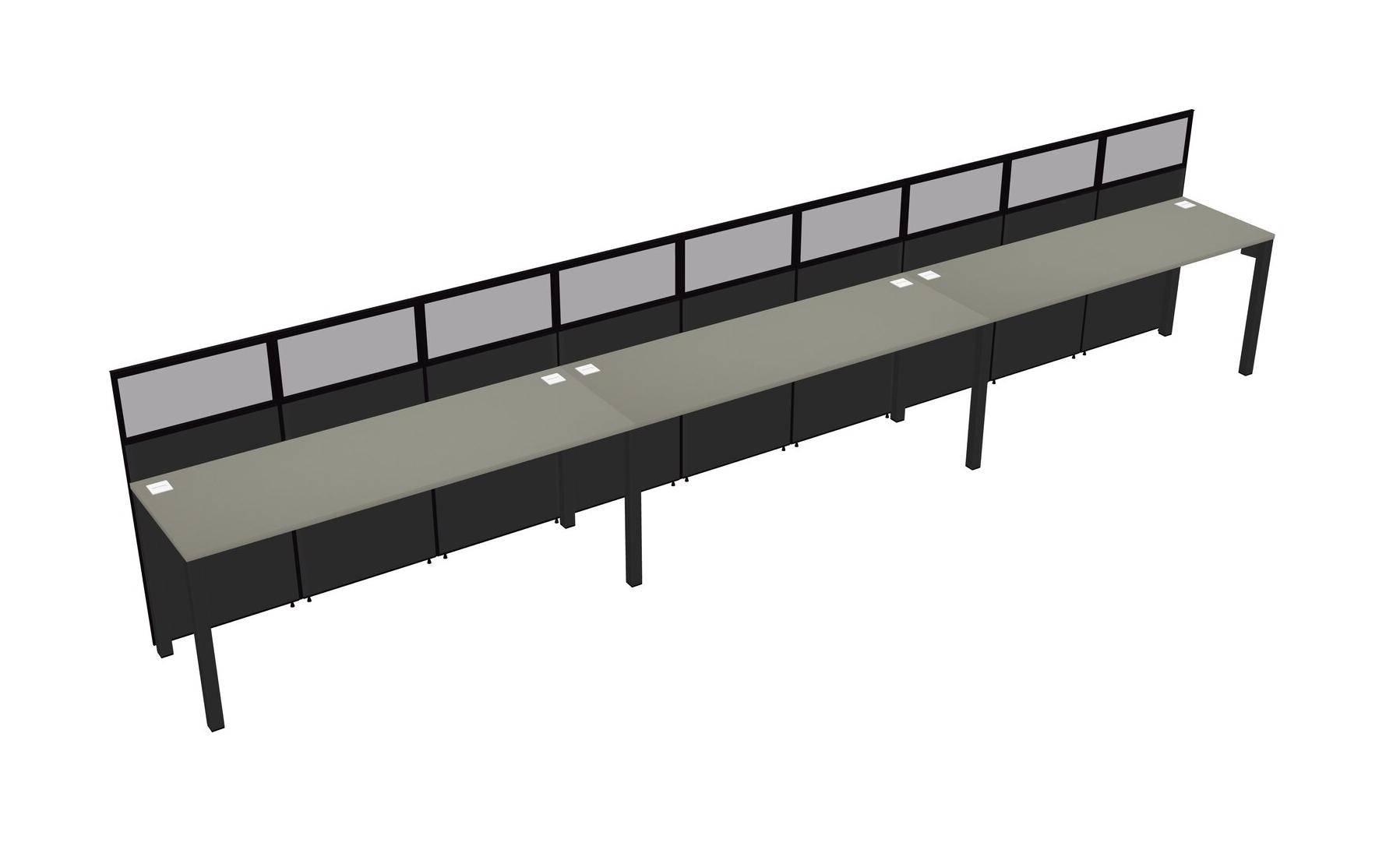 Grey Shadows Shared Rectangular Office Cubicle Panel System For 3 Persons