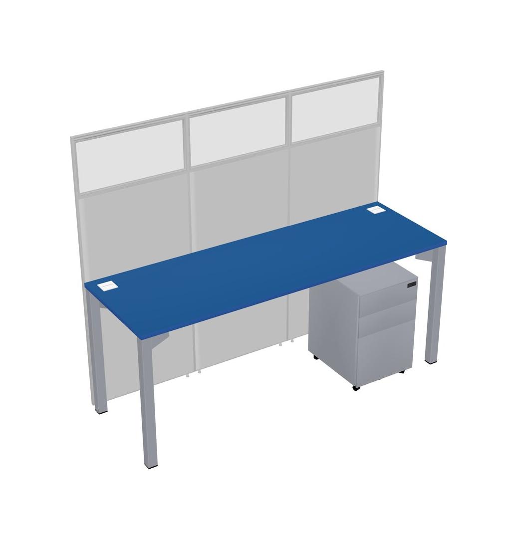 Prism Blue Shared Rectangular Office Cubicle Panel System With Mobile Drawers For 1 Persons