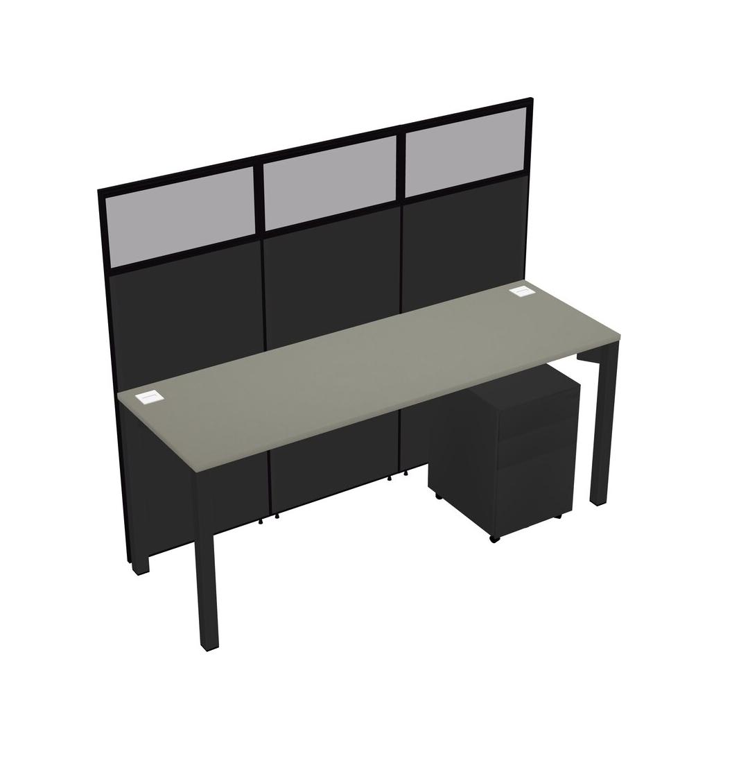 Grey Shadows Shared Rectangular Office Cubicle Panel System With Mobile Drawers For 1 Persons