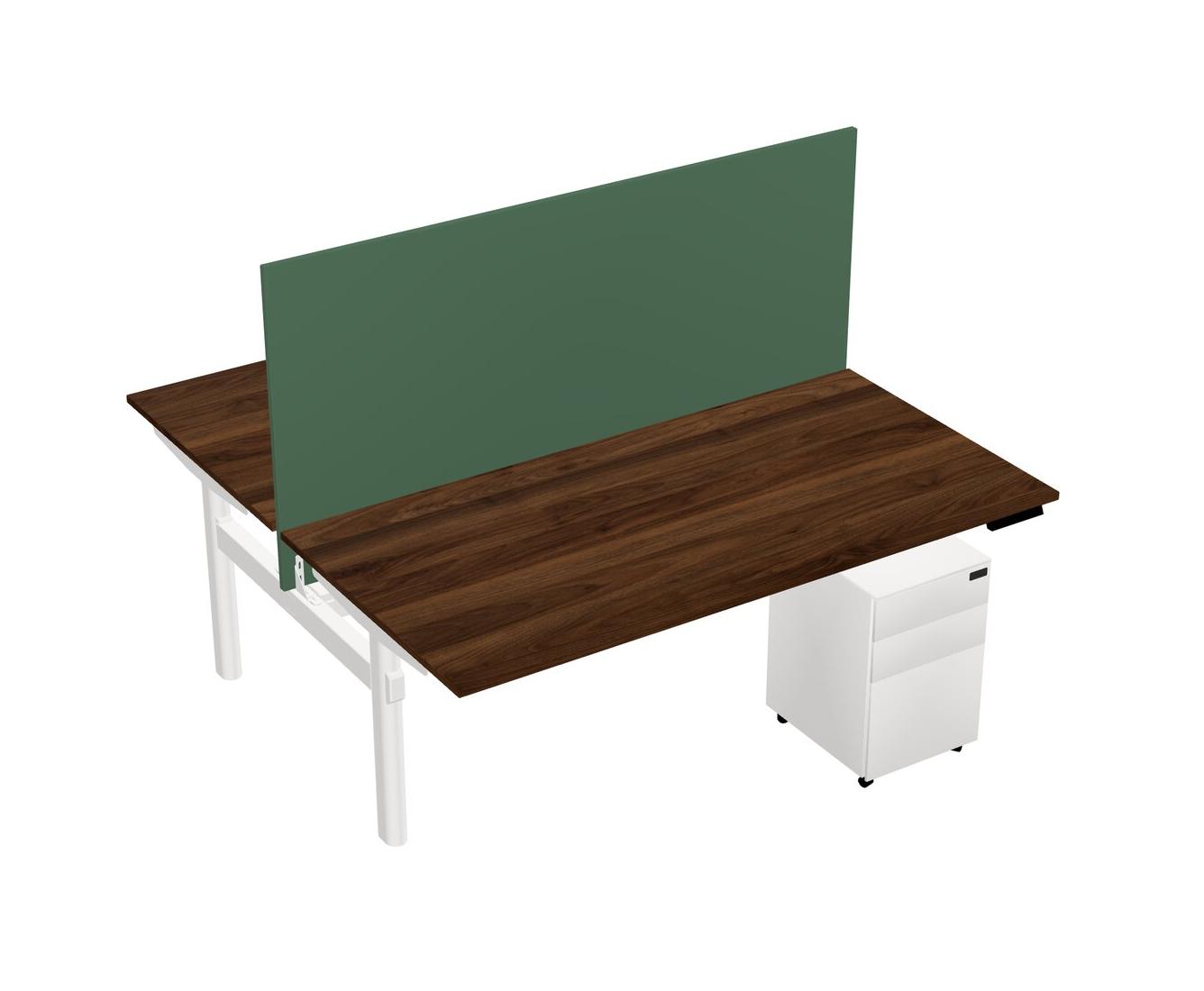 Columbia Walnut Shared Dual Motor Electric Height Adjustable Desk With Metal Mobile Drawers And Desk Divider
