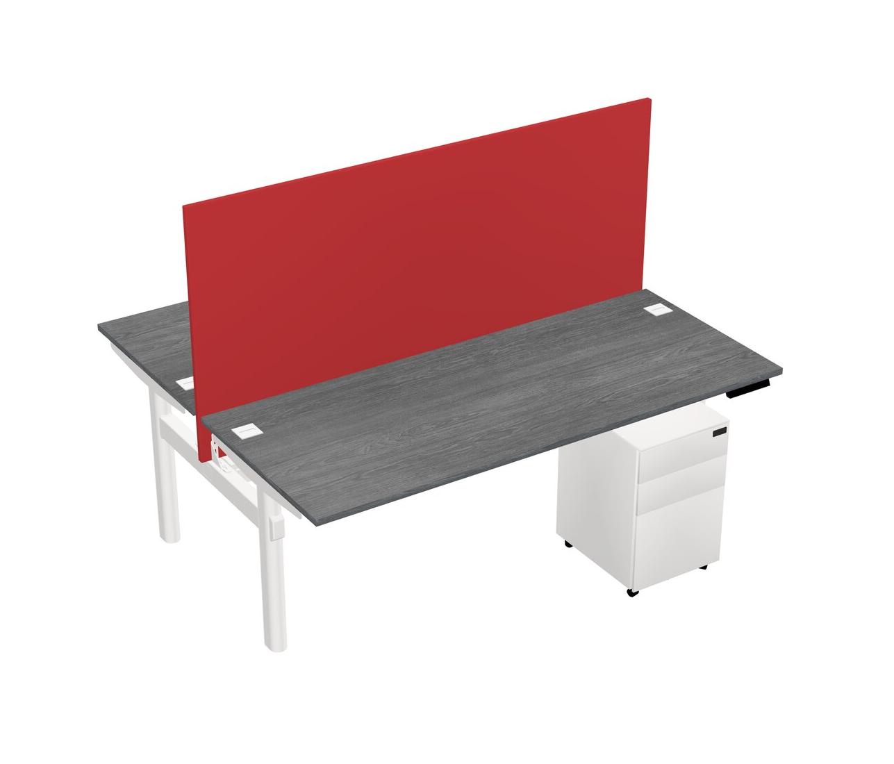Grey Shared Dual Motor Electric Height Adjustable Desk With Metal Mobile Drawers And Desk Divider