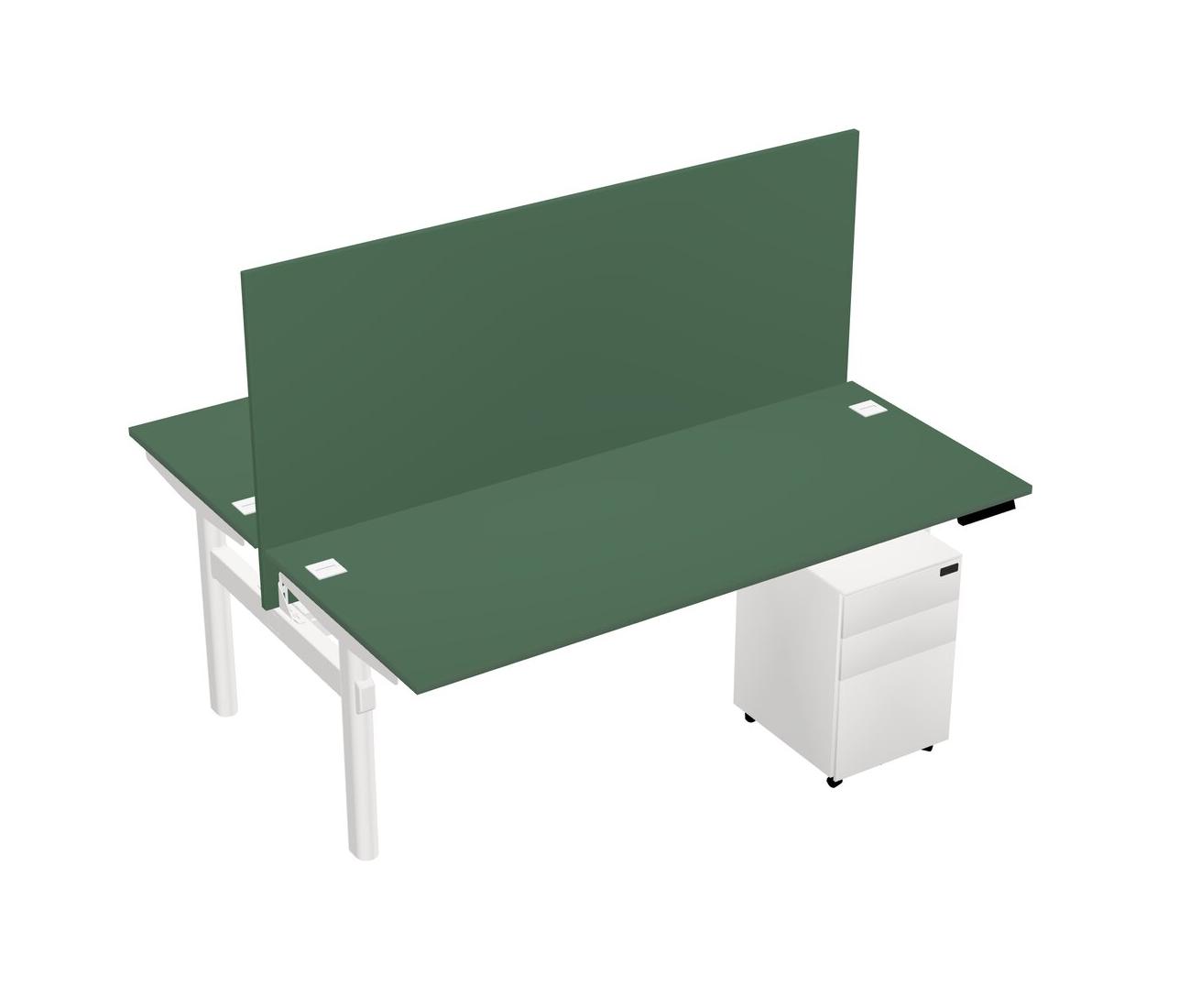 Green Shared Dual Motor Electric Height Adjustable Desk With Metal Mobile Drawers And Desk Divider