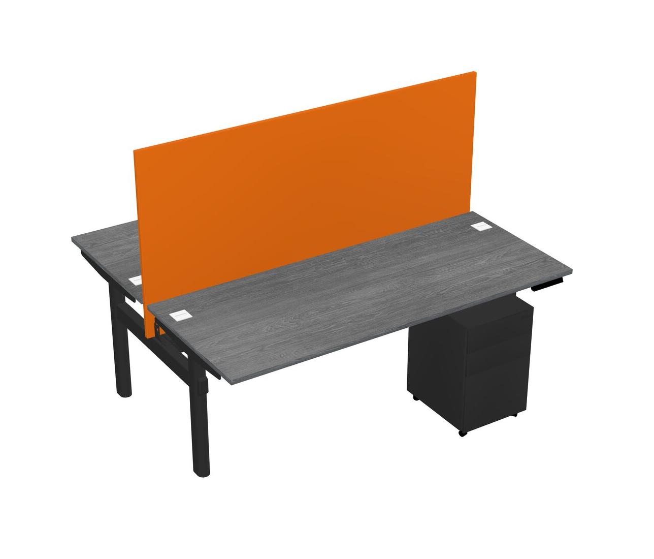 Grey Shared Dual Motor Electric Height Adjustable Desk With Metal Mobile Drawers And Desk Divider