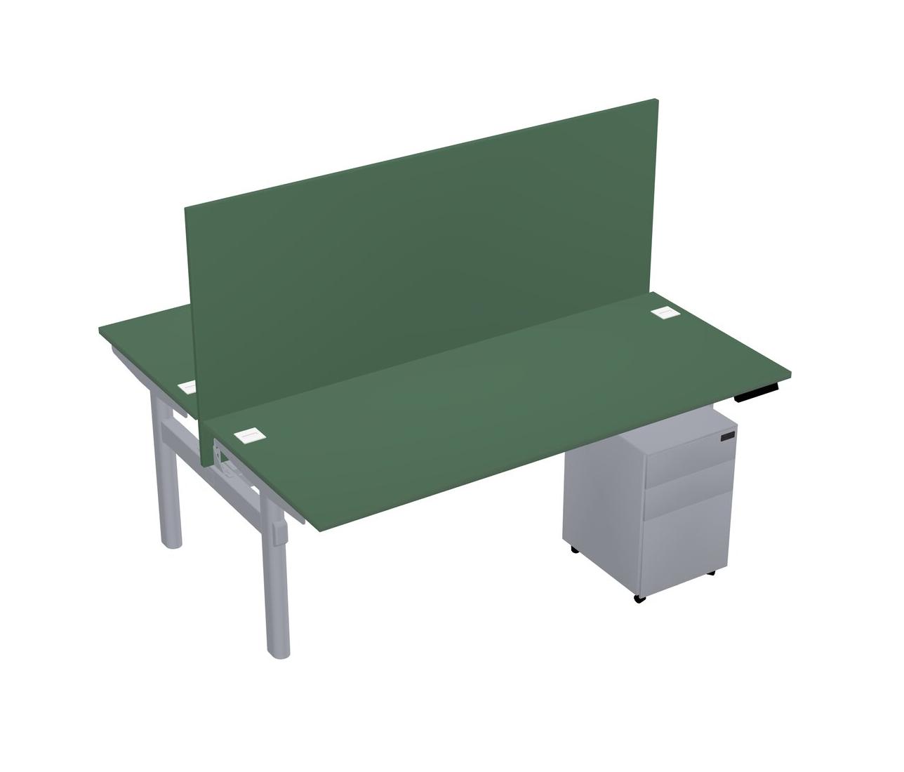 Green Shared Dual Motor Electric Height Adjustable Desk With Metal Mobile Drawers And Desk Divider