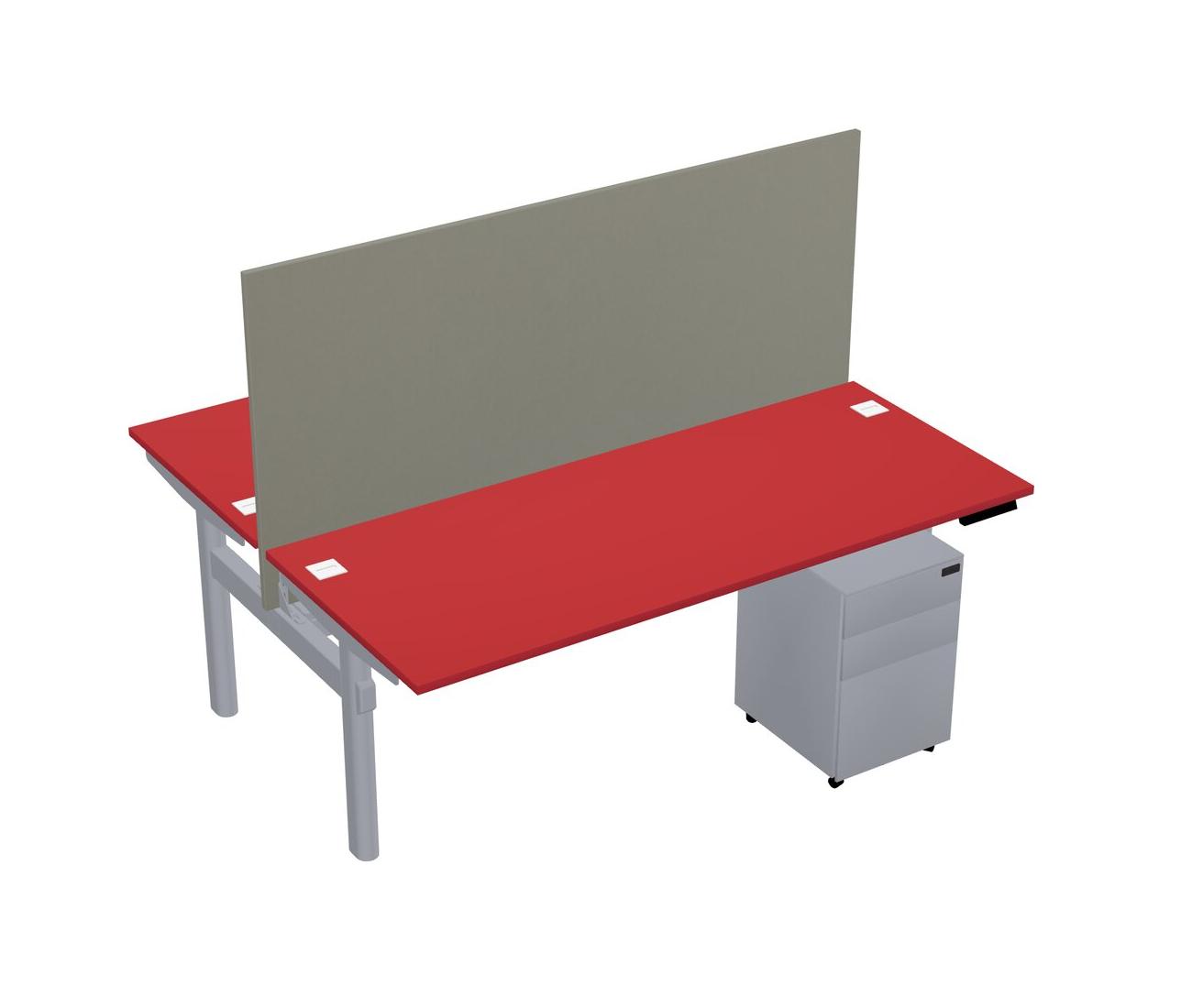 Prism Red Shared Dual Motor Electric Height Adjustable Desk With Metal Mobile Drawers And Desk Divider