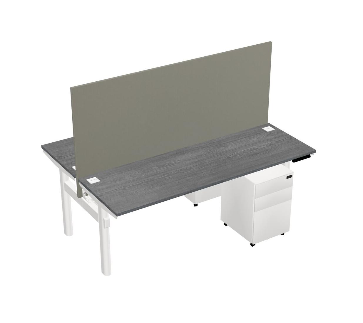 Grey Shared Dual Motor Electric Height Adjustable Desk With Metal Mobile Drawers And Desk Divider
