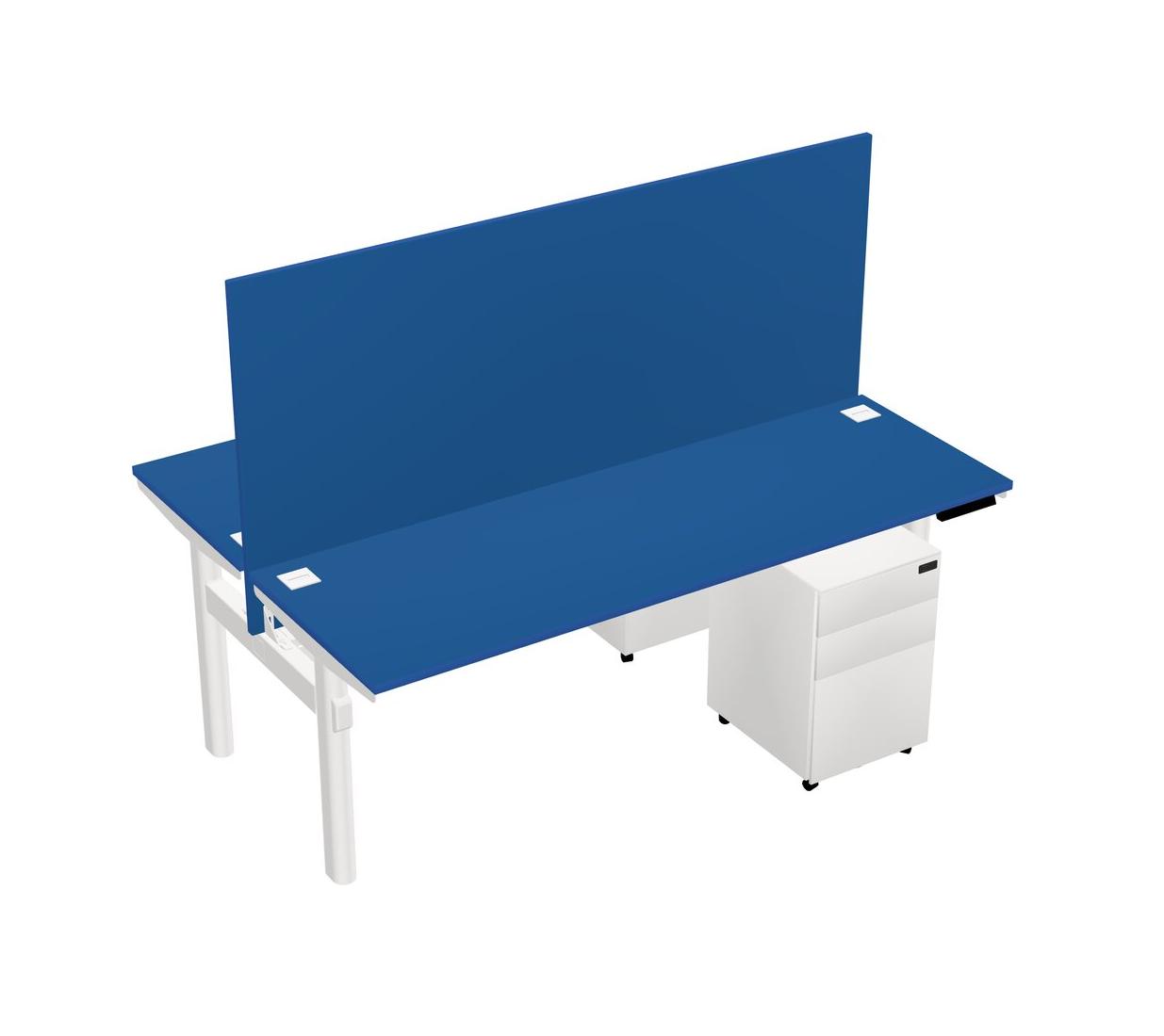 Prism Blue Shared Dual Motor Electric Height Adjustable Desk With Metal Mobile Drawers And Desk Divider