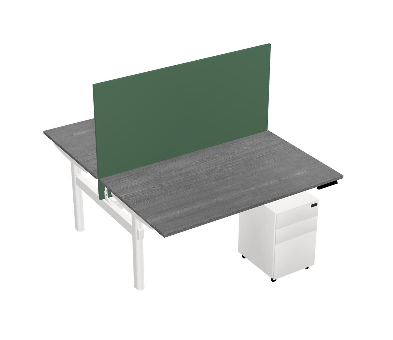 Grey Shared Dual Motor Electric Height Adjustable Desk With Metal Mobile Drawers And Desk Divider