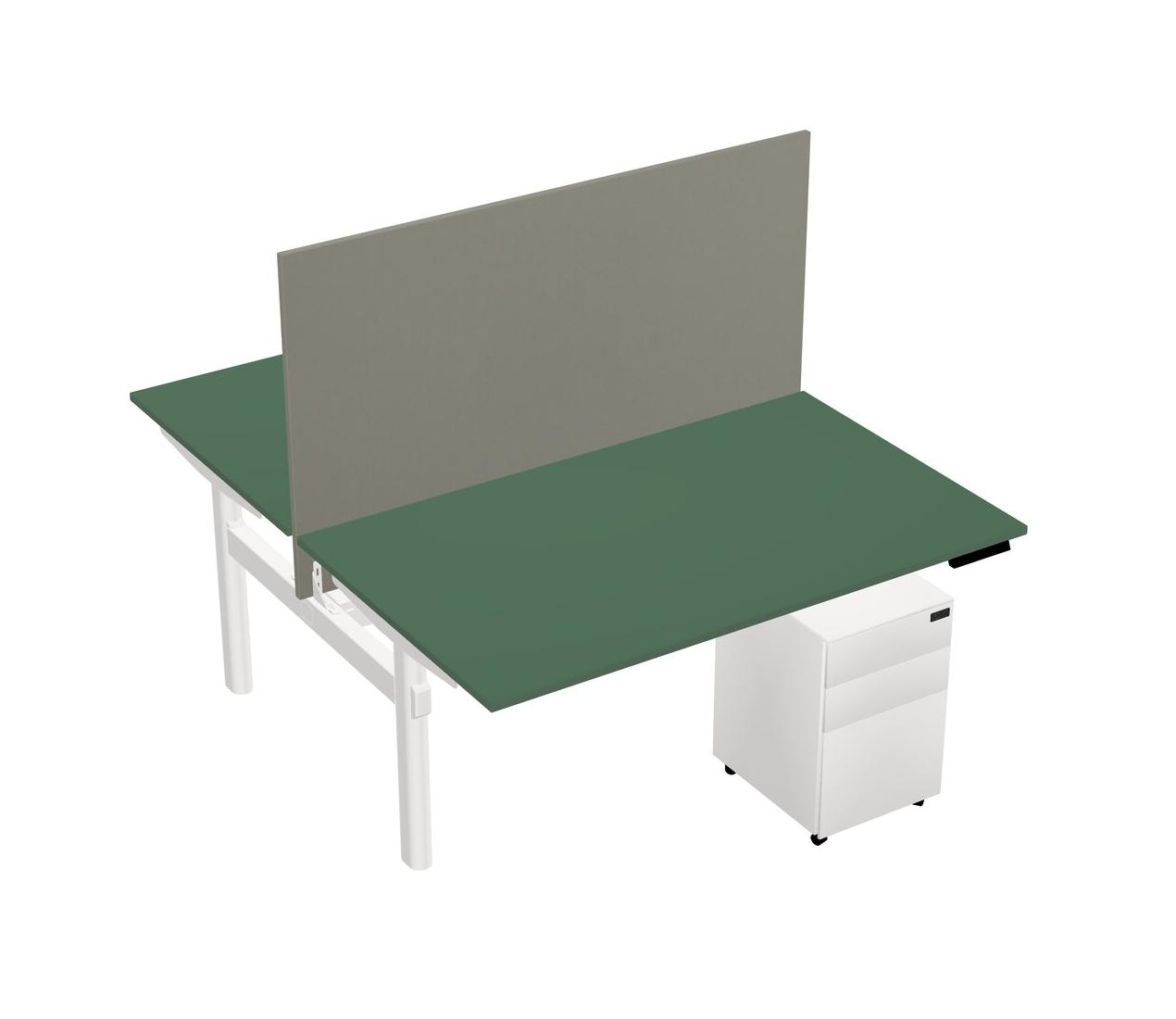 Green Shared Dual Motor Electric Height Adjustable Desk With Metal Mobile Drawers And Desk Divider